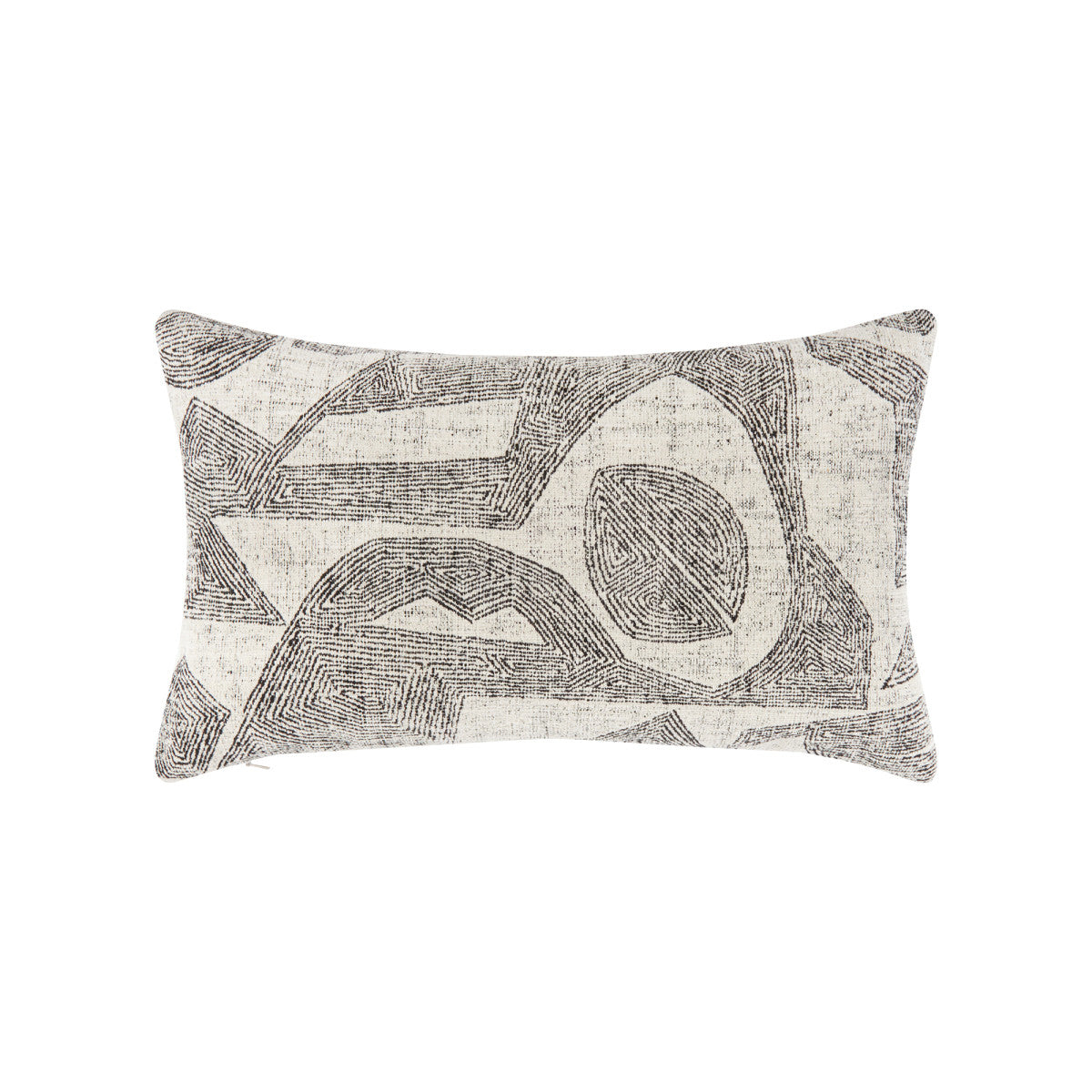 The Intertwine pillow is a sophisticated blend of neutral tones and ebony, woven into a luxurious basketweave design.