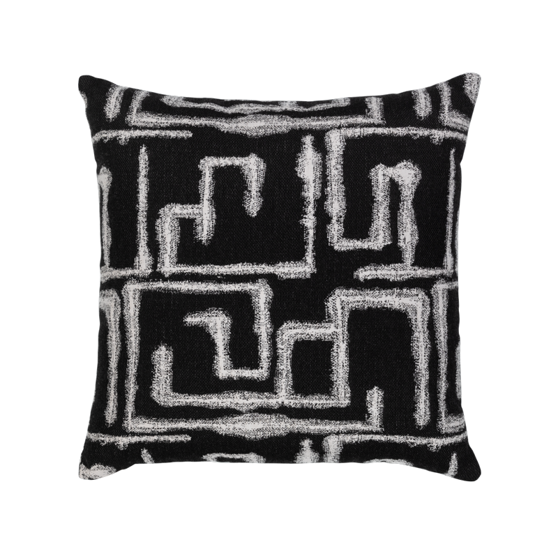 Global influence in an abstract key design creates bold, graphic style in the Kasai pillow. In a classic palette of black and white, this woven pillow is a perfect layering piece and will coordinate easily with many items in our collection.