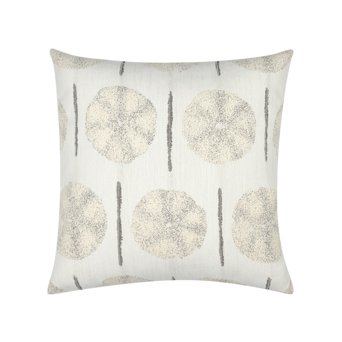 Inspired by modern art, soft organic circles and painterly lines create a dramatic design with metallic glamour. The juxtaposition of rich color and the soft, natural textured ground makes Solstice a striking elevated pillow with a strong sense of artistr